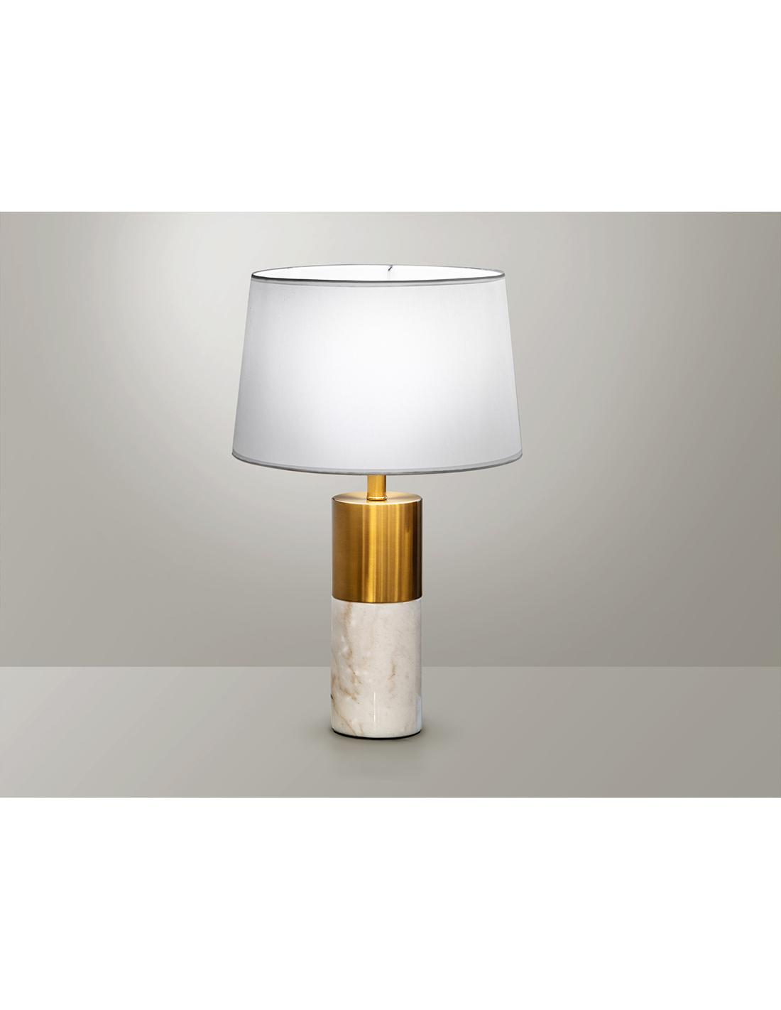 1-light table lamp. Made of white marble and metal with a satin bronze finish. White textile screen. ·Includes 1 E27 LED 10W