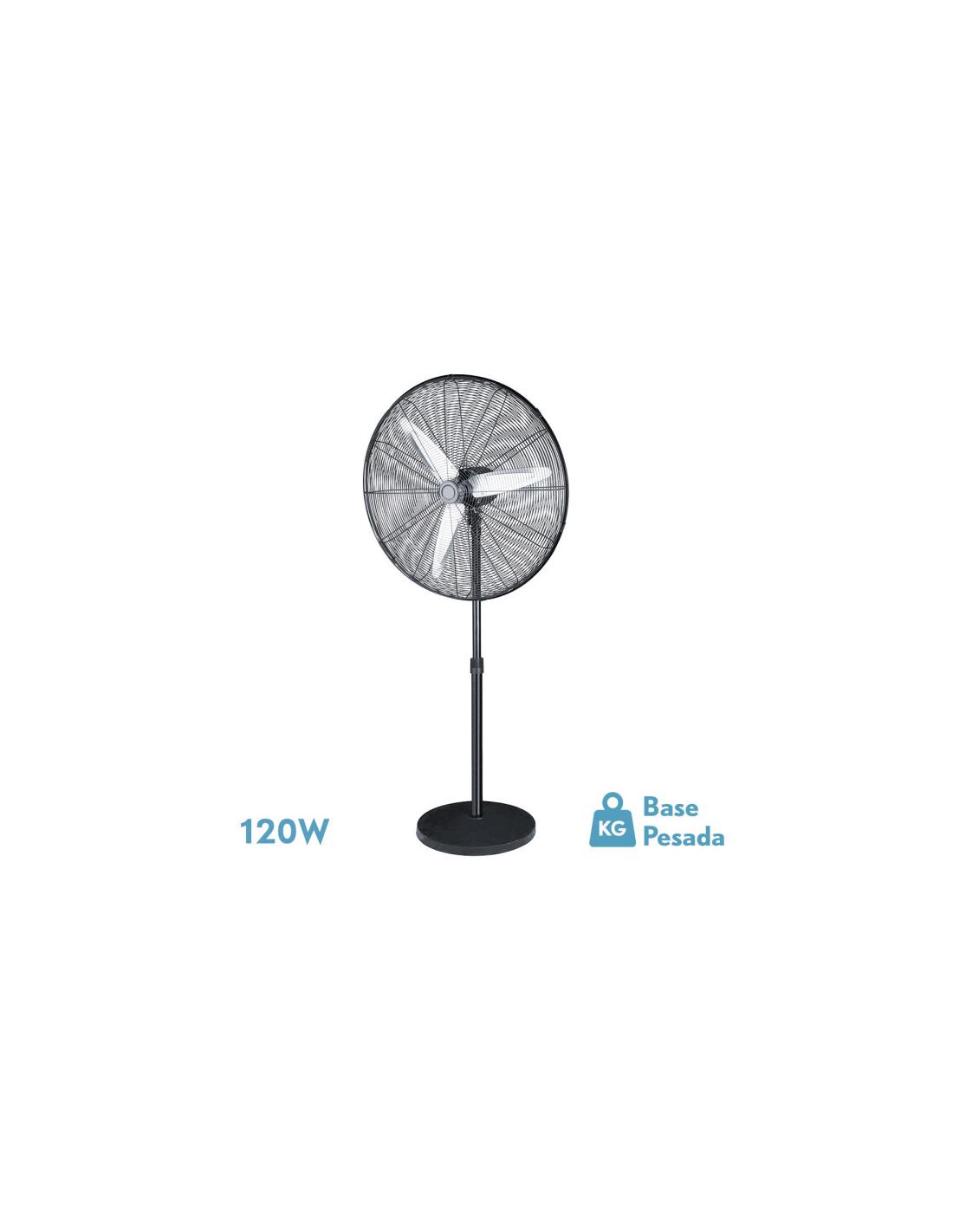 ALARCON series floor fan made of metal, aluminum and polycarbonate, BLACK with three SILVER blades and three speeds. AC motor. Two positions, fixed and rotary, also oscillating, being able to redirect the air to the desired area. It has a power of 120 watts. It has an adjustable height measurement of 91<,123.5x55x40 centimeters. Available in this series with powers of 120w, 180w and 200w with their corresponding measurements.<br/><br/></div>