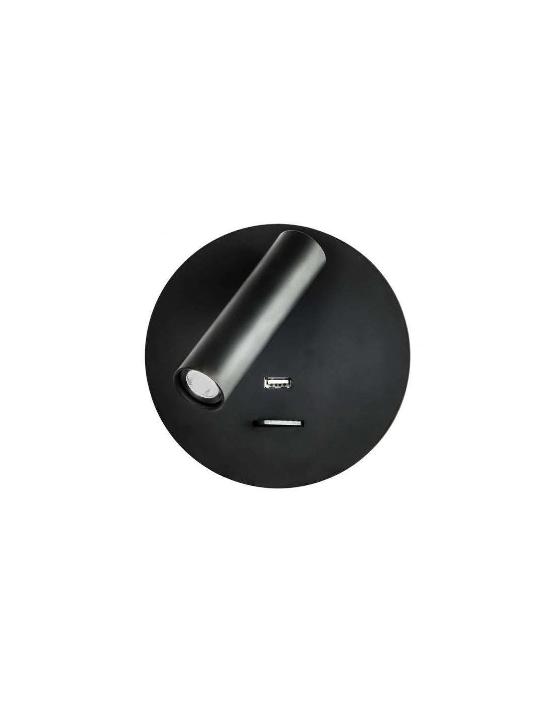 Giotto Round Black Wall Light 3w 4000k USB Port 150lm C/switch 14x14x12cm Orientb