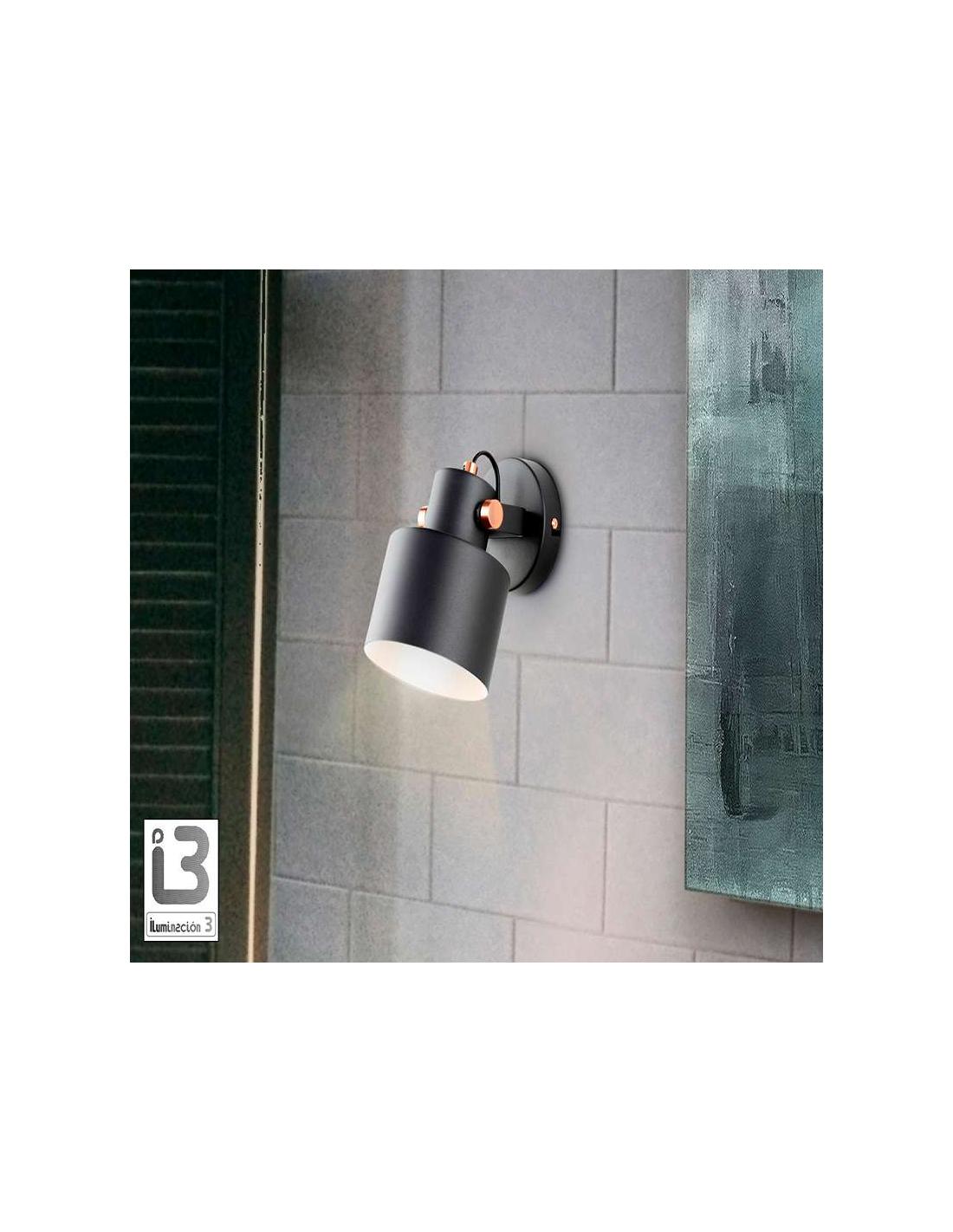 Wall lamp made of matte black finished metal, satin copper details. Screen with adjustable tilt. 1 E27