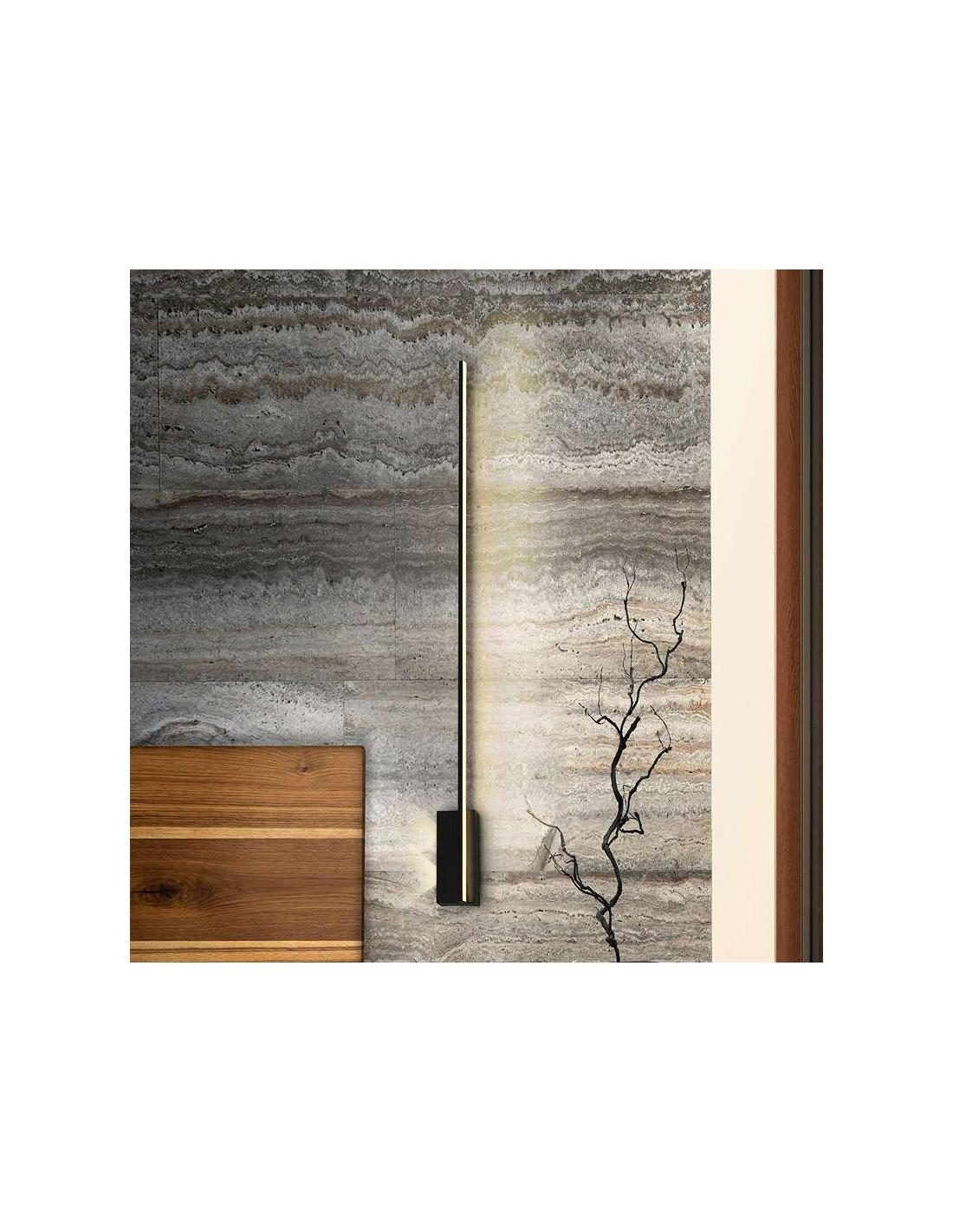 Wall lamp, made of aluminum and metal, matte black finish. Arm with LED light and opal silicone diffuser, and two side LED spotlights, 17W LED, 1,400 lm, 3,000 K.