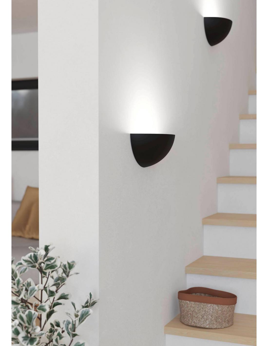 Black steel wall light from the marca EGLO, especially indicated to illuminate a wall in passageways such as stairs or corridors, or as secondary lighting in a living room or dining room. Its concave design gives it the perfect elegance for eclectic, modern and even classic decorations with similar, oriental or transgressive tones in Mediterranean decorations. Requires an E27 bulb, not included.