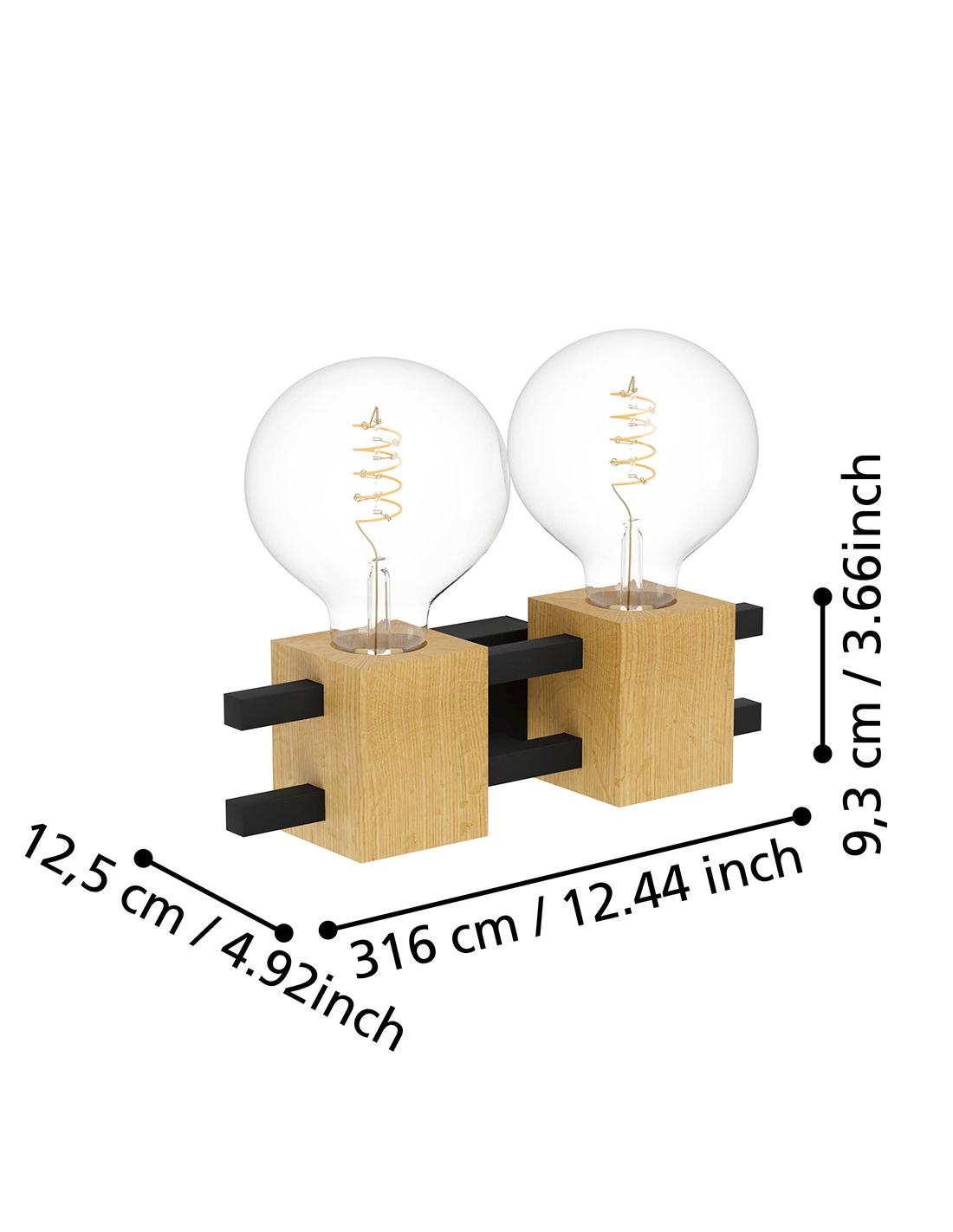 Wall lamp 2 lights black wood - EGLO Levantaa