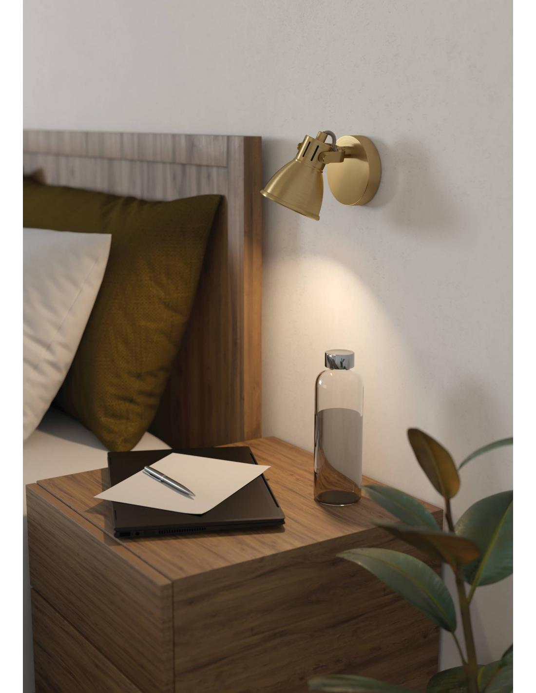 The LED SERAS wall light consists of a metal support finished in brushed brass and has a moving head made of metal in the same color. The headboard is combined with a gold-colored interior. The modern look of the wall lamp perfectly completes the modern furniture and provides specific lighting in the room, whether in the kitchen, living room, bedroom or hallway. The GU10 LED bulb is included and emits a pleasant warm light.