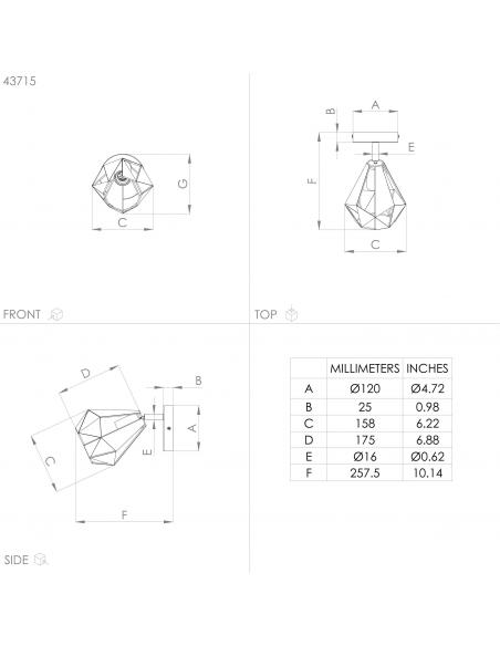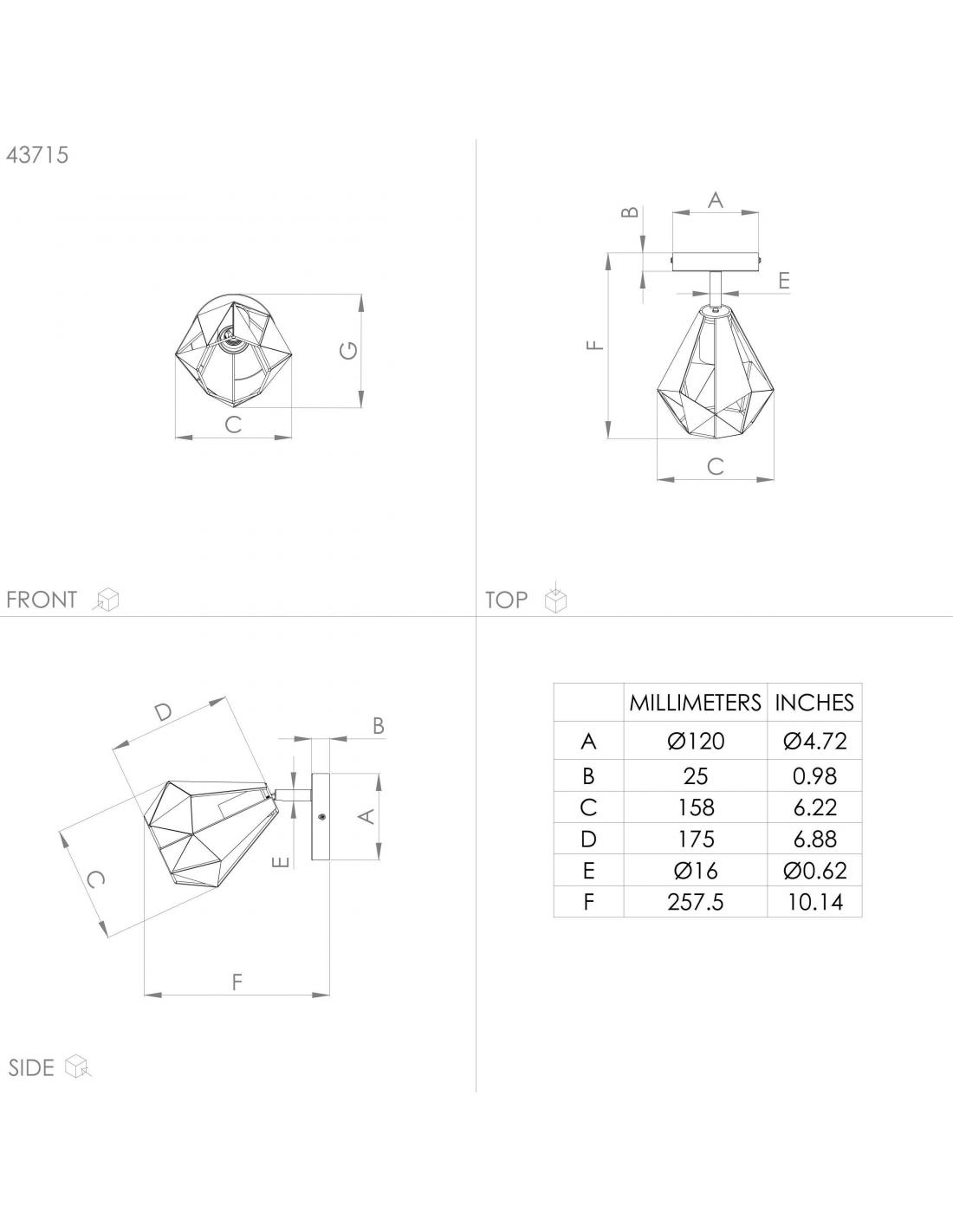 The CARLTON 7 wall light is made of black metal and has a movable diamond-shaped screen and its interior is aged copper color. The geometric openings in the screen create a fascinating play of light and shadow on the wall. The wall lamp completes modern style trends and looks good in any room, whether in the living room, bedroom or dining room. The filament bulb shown is not included. The lamp is suitable for any bulb with an E27 socket.