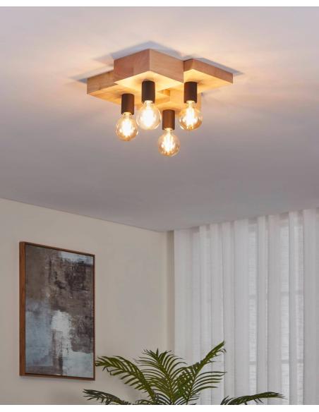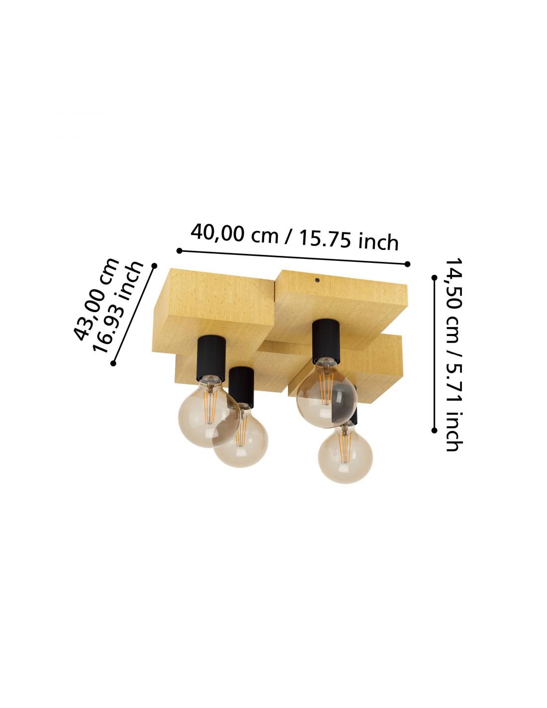 4-light ceiling lamp with a wooden base in geometric format and black sockets. Its ladder format allows you to create a pleasant light effect. Ideal for any room. Uses 4 E27 socket bulbs, NOT INCLUDED.