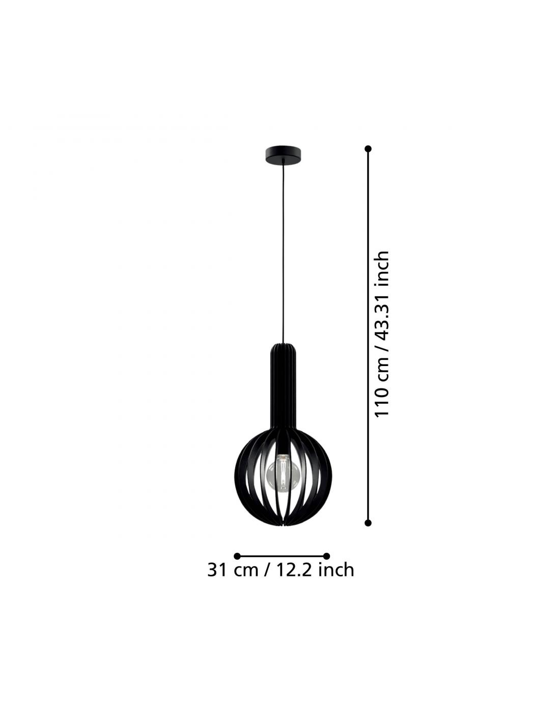 Hanging lamp made with wooden rods arranged in the shape of a pumpkin with a very elegant black finish. This piece is perfect for starring in rooms such as a small dining room, a medium-sized room, or as a second point of light in combination with another of a different shape. The choice is yours! It uses an e27 socket bulb, not included.