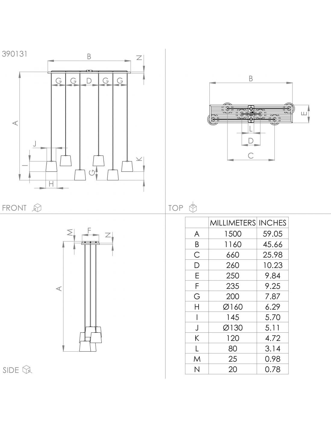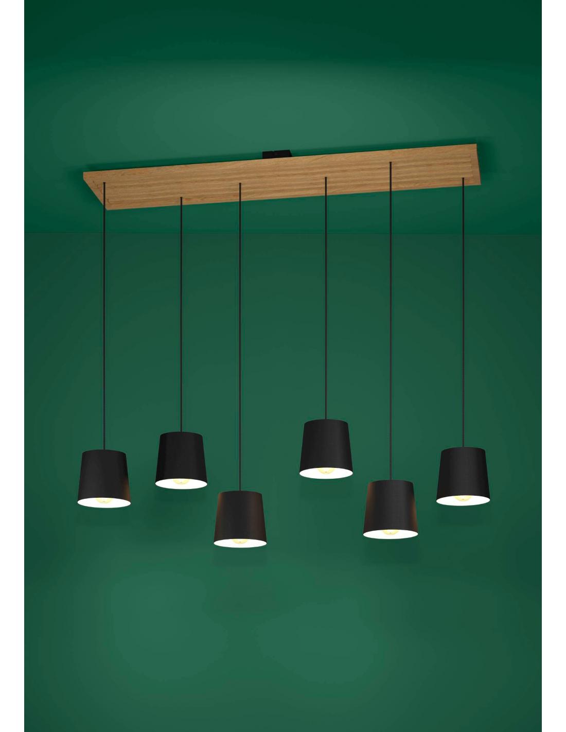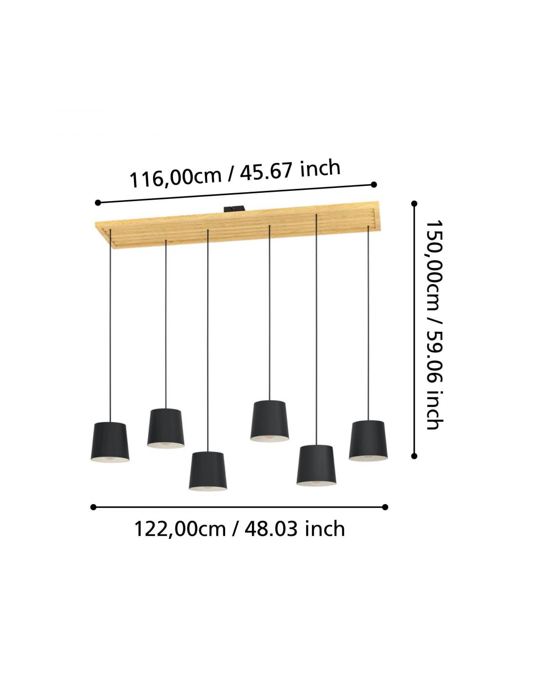 6-light pendant lamp steel and wood - EGLO Camarioca
