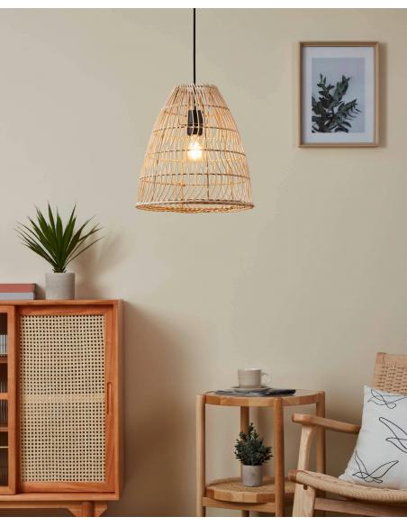 Hanging lamp made of natural fibers with a shade made of wood handcrafted from interwoven fibers whose result is a very trendy lamp, beautiful and with a lot to add to any room where you place it. Requires an E27 bulb, not included.