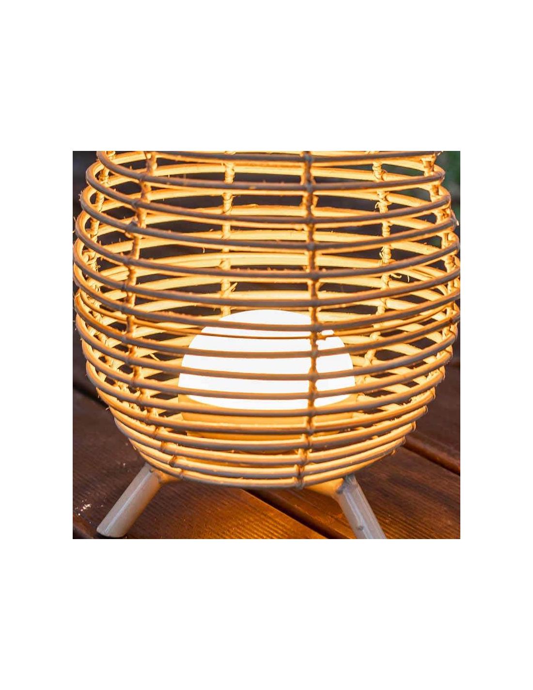 Beautiful and original Bossa table lamp. It does not need cables, it has a portable rechargeable bulb that you can operate with a remote control and its structure is handmade with braided natural fibers. In addition, it is the ideal complement to decorate and illuminate your indoor and outdoor spaces, thanks to its IP54 protection. Let there be light!