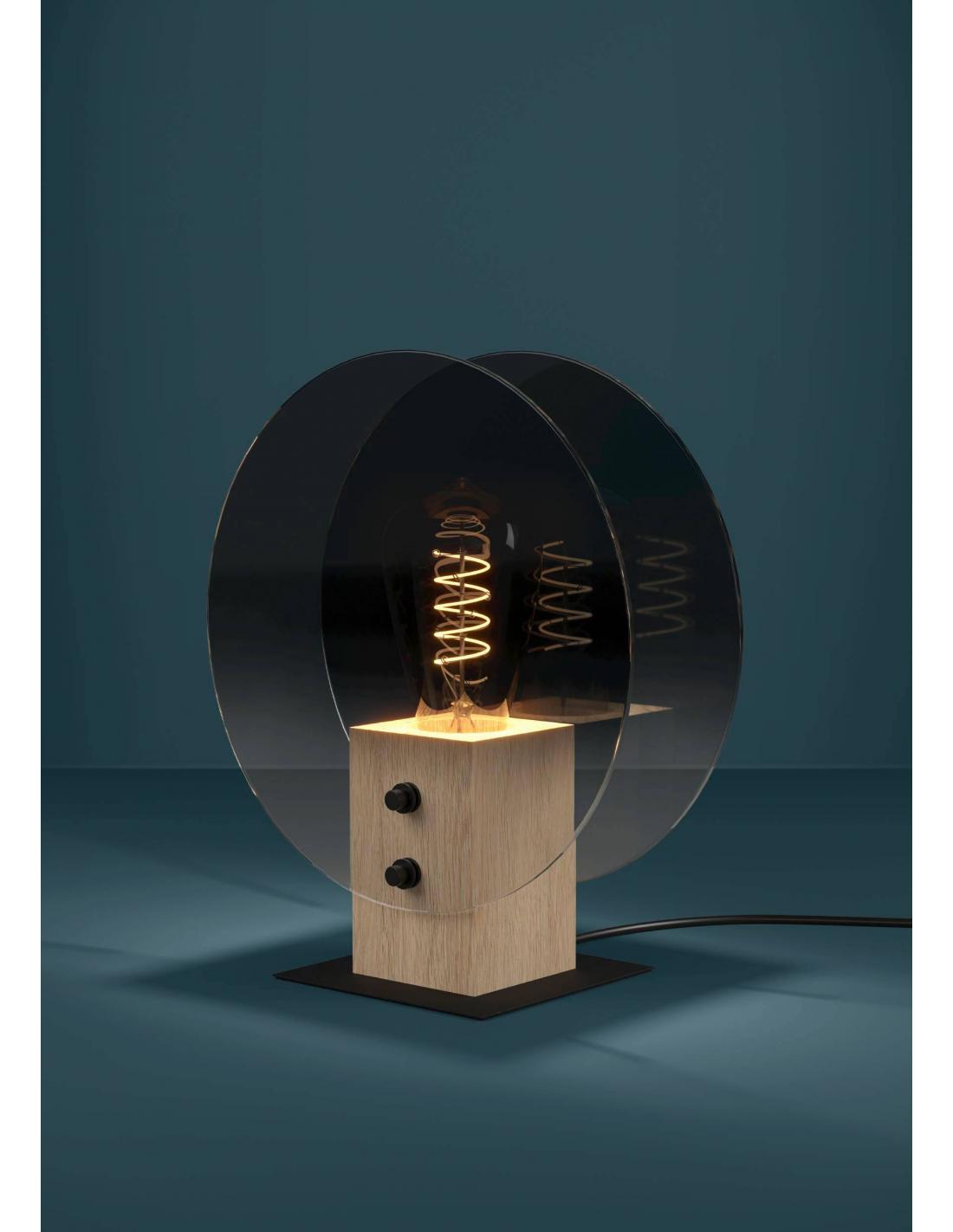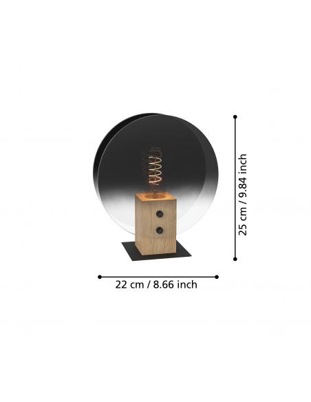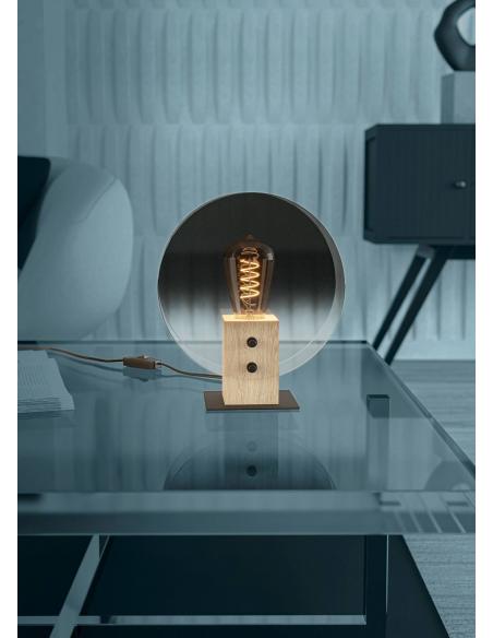 Original table lamp made of smoked vaporized glass with a steel base. Ideal for adding a decorative touch to your side table or bedside table. It is activated by cable switch and E27 socket, bulb NOT INCLUDED.