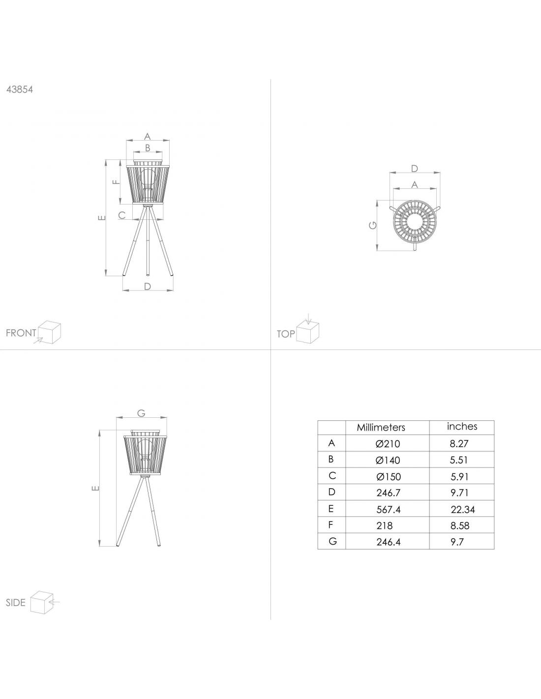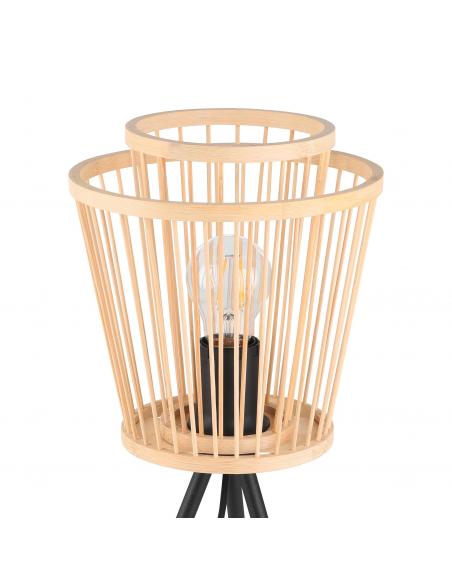 Tripod table lamp with cage-shaped shade and made with natural fibers, black steel legs and cable switch. A beautiful and functional lamp that is very fashionable today. The natural style evokes a lot of harmony and warmth in your home, something fundamental in this type of decoration. It uses an e27 bulb, not included.